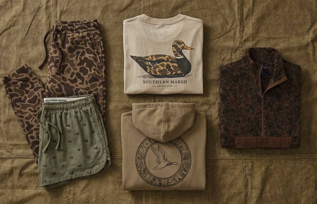 Duck Originals Tee - Camo $35.00 / /Washed OatmealIron GrayRhubarbBay GreenWashed WalnutWashed Dark GreenWashed PinotBimini GreenArlington BlueBurnt SageWashed PinkCarajillo Brown+ more -